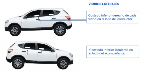 Y en el caso de vehículos que cuenten con su patente pintada en sus costados (como taxis o camiones), deberán realizar el grabado sólo en espejos laterales y parabrisas.